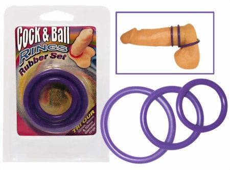Diese nahtlos glatten Spezialgummi-Ringe (Durchmesser 32, 40 und 50 mm) können durch passgenauen Sitz die Erektionsdauer enorm verlängern! Einzeln oder in Kombination zu verwenden - auch ideal zur Hoden-Schnürung. Farbe: Dunkelviolett